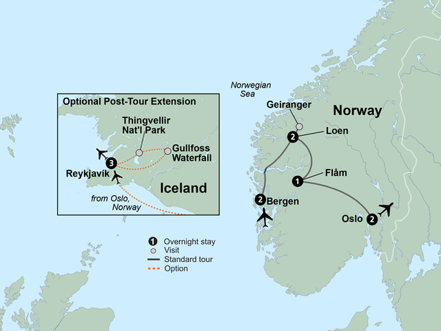 Venture to a place where crashing ocean meets craggy mountains, forging the awe-inspiring majesty of the Norwegian fjords. Start in Bergen, a city in the heart of the fjords with the charm of a small town. Journey on one of the world’s steepest train rides, the legendary Flåm Railway, past rushing waterfalls, looming mountains, and picturesque valleys. Relax in the Norwegian countryside, where you’ll wake up amongst breathtaking mountain vistas and fjords. Cruise the crystal waters of the Geirangerfjord. Walk the streets of Oslo, taking in the capital’s iconic sights. From Bergen to Oslo, you’ll be awestruck by the grandeur of Norway.