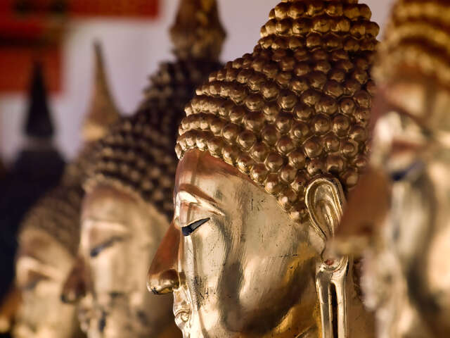 Swim in turquoise pools below a seven-tiered waterfall, Meet a resident monk and receive a Buddhist blessing at one of Thailand’s most revered temples, Explore Wat Pho to view a colossal gilded statue of the Reclining Buddha, Visit a village home outside and sit down to a traditional khantok dinner